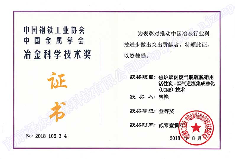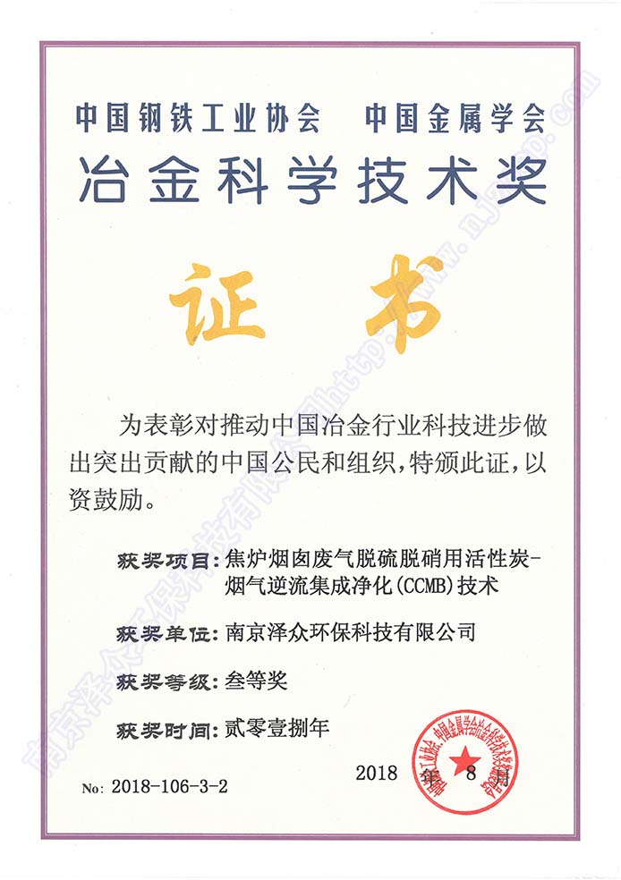 南京澤眾環(huán)保科技有限公司坐落于南京市雨花臺區,注冊資本6000萬元,2017年被認定為高新技術企業,2018年被認定為瞪羚企業,入選中國鋼鐵技術與服務供應商品牌企業,被評為鋼鐵產業鏈綠色標桿企業,與浙江工業大學合作成立聯合研發(fā)中心,入股河南安鋼澤眾冶金設計有限責任公司,牽頭起草《燒結煙氣活性焦干法脫硫、脫硝技術規(guī)范》和《焦爐煙氣聯合脫硫脫硝技術規(guī)范》。